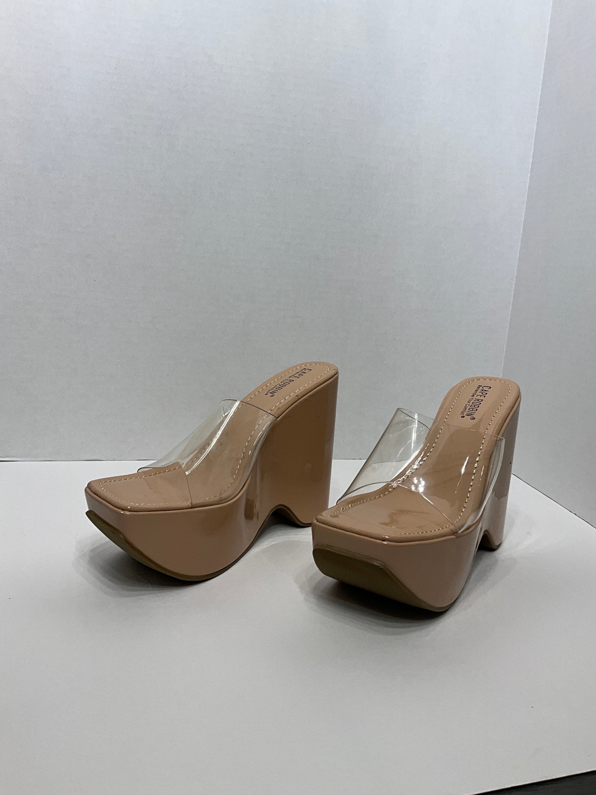 Cape Robin platform wedge sandals, 6 inch heel square open toes slip on clear strap
